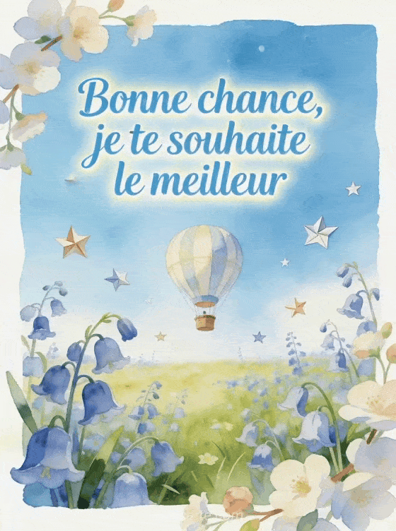 Un message pour souhaiter bonne chance a quelqu'un gagne à rester clair et chaleureux; cette carte peut accompagner un encouragement plein d'élan, rejoindre une attention tendre ou soutenir une réussite d'examen avec des mots simples.