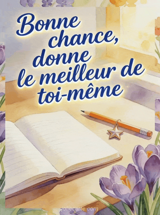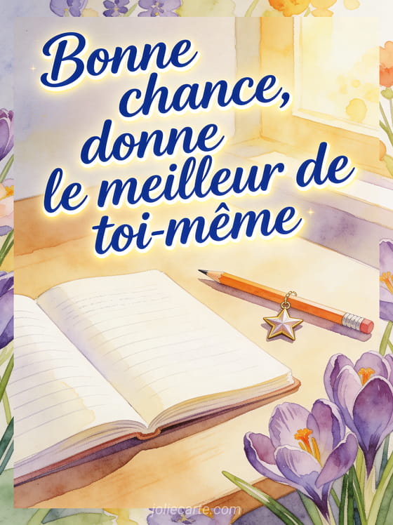 Un message pour souhaiter bonne chance a un examen doit rassurer et donner confiance; cette carte aide à souhaiter une belle réussite, à envoyer un encouragement direct et à choisir une carte pensée pour les examens sans chercher les mots.