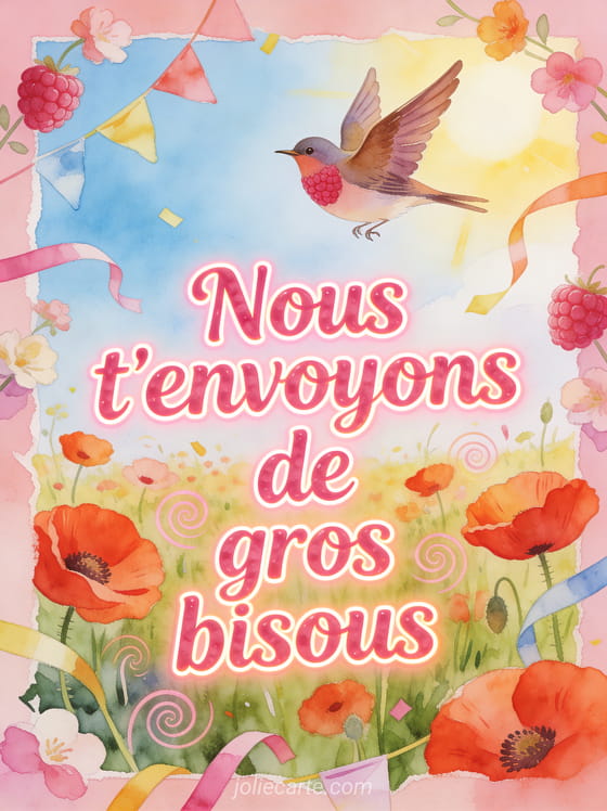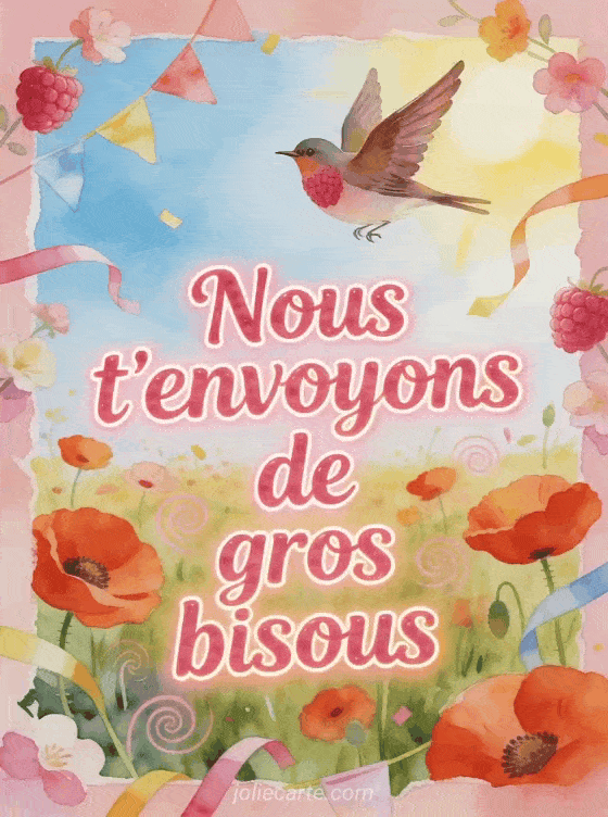Nous te faisons plein de bisous quand un seul message ne suffit pas, surtout si tu veux y joindre un gif de bisous plein de malice, reprendre une formule collective tres chaleureuse ou ajouter une image de bisous a l'allure joyeuse pour encore plus de presence.