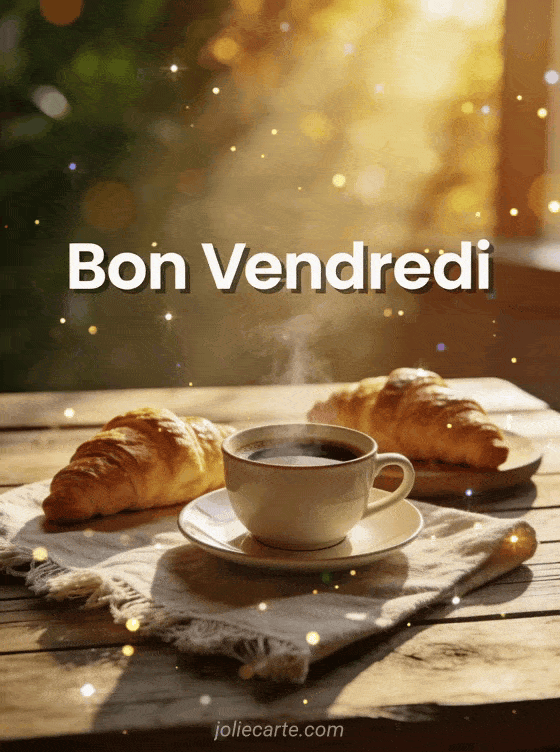 Partagez cette photo « Bon Vendredi » avec son café fumant et ses croissants dorés pour une ambiance matinale chaleureuse. Variez avec un vendredi pluvieux, un vendredi tendre ou un vendredi rigolo.