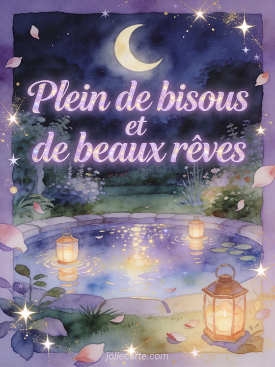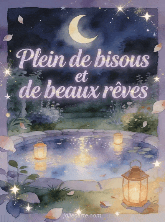Pour reve bisous, cette carte convient aux messages du soir qui melent affection et douceur. Elle peut rejoindre des bisous scintillants en animation, s'appuyer sur une citation pleine de bisous et rappeler un jardin de bisous plein de poesie avant de souhaiter une belle nuit.