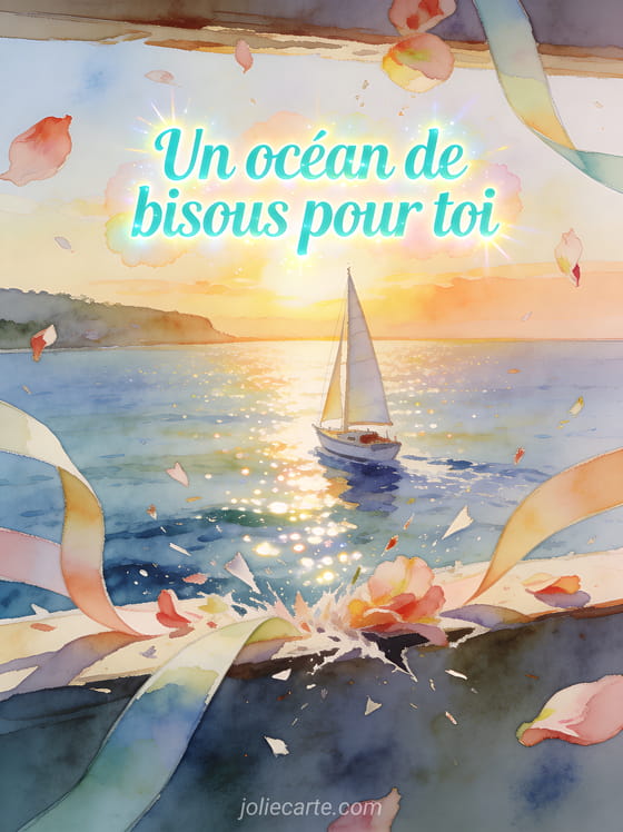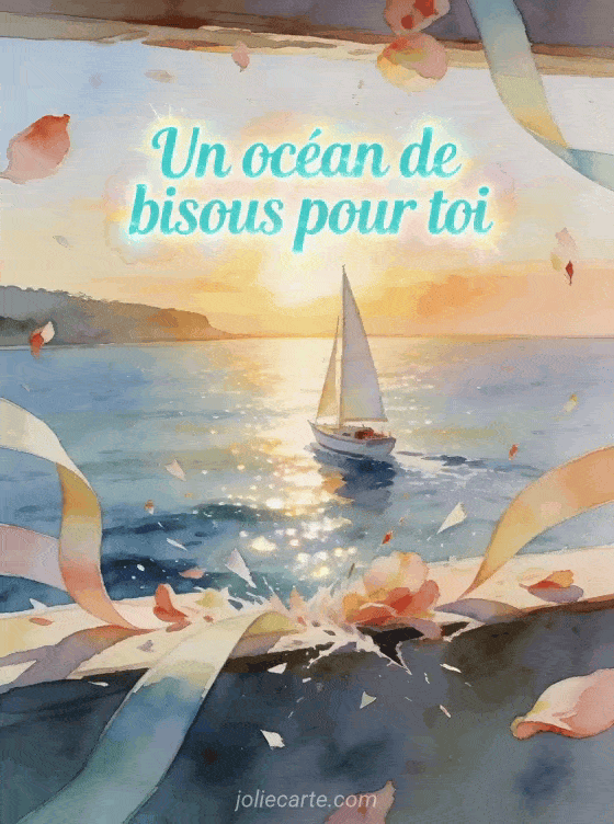 Avec un bateau de bisous, cette carte suggere un envoi genereux et lumineux qui fait voyager le message. Elle peut s'associer a des bisous tendres en animation, ajouter une touche de fantaisie avec un gif bisous au dauphin et retrouver des papouilles accompagnees de bisous dans le meme elan.