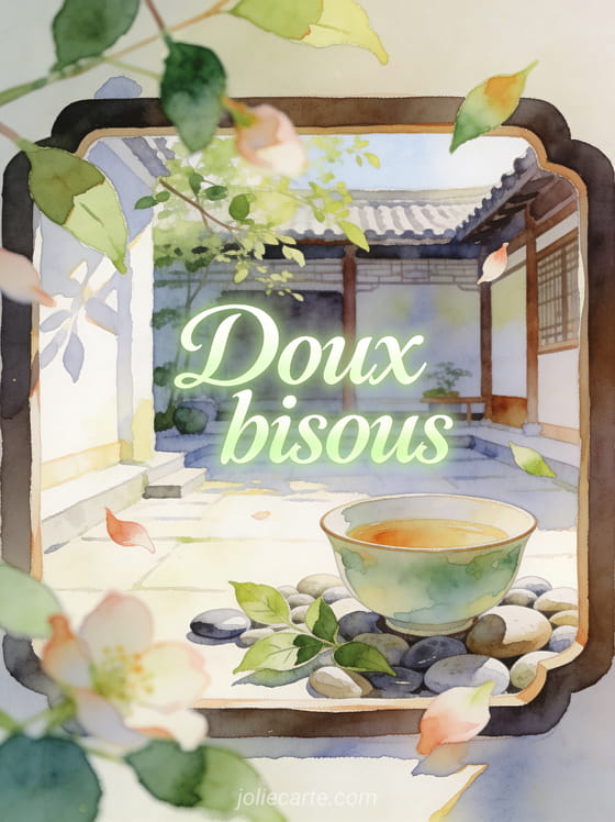 Avec zen bisous, cette carte propose un message calme et affectueux, ideal quand on veut rester simple. Elle peut accompagner de gros bisous en animation, nuancer un poeme autour d'un bisou dans le cou et faire echo a une citation pleine de bisous dans un ton plus paisible.