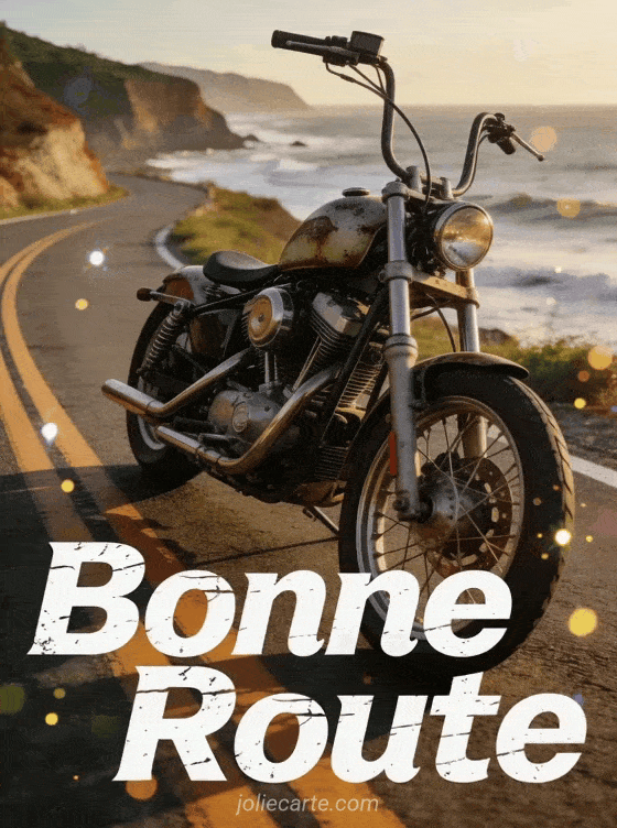 Souhaitez bonne route à votre collÚgue avec cette carte esprit road trip. Une moto sur route cÎtiÚre pour symboliser la liberté qui l'attend. Découvrez aussi une carte simple, une carte continuation ou une carte champagne.