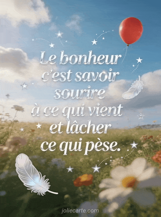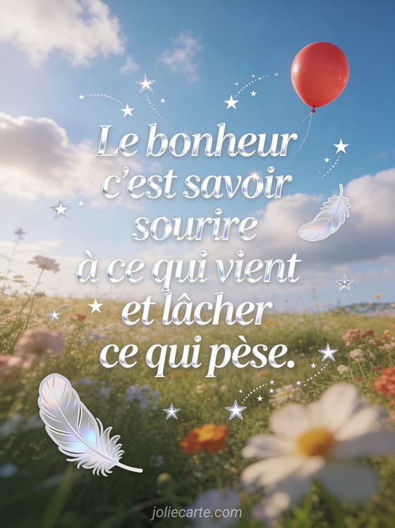 Le bonheur c'est savoir sourire Ă ce qui vient et lĂącher ce qui pĂšse. une citation inspirante sur le bonheur et l'art de lĂącher prise