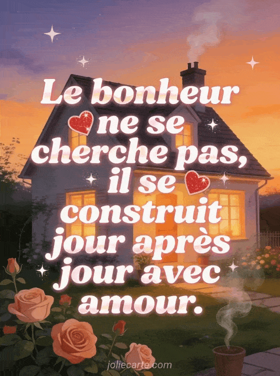 Le bonheur ne se cherche pas, il se construit jour aprĂšs jour avec amour. une image de bonheur, de joie et d'amour Ă construire chaque jour