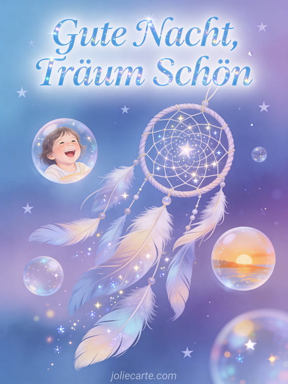 Wuensche jemandem suesse Traeume mit dieser bezaubernden Gute-Nacht-Karte. Entdecke auch eine Gute-Nacht-Karte, eine Karte schoenen Abend und gute Nacht oder eine Abend- und Nachtkarte.