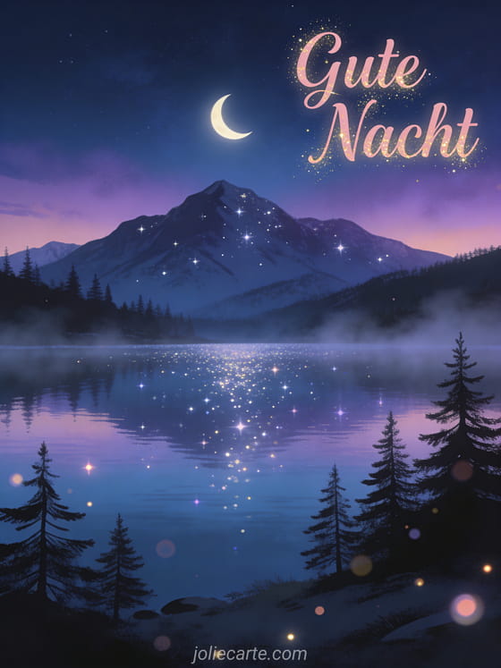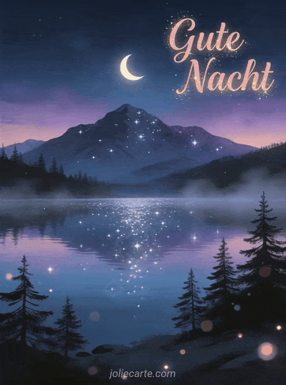 Beende den Tag in Frieden mit diesem ruhigen Gute-Nacht-Gruss. Entdecke auch eine Karte schoenen Abend und gute Nacht, eine Gute-Nacht-Karte oder eine entspannende Abendkarte.