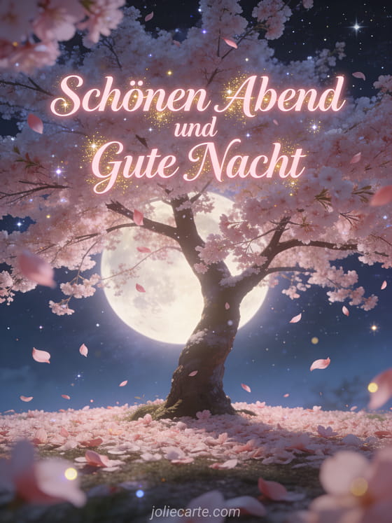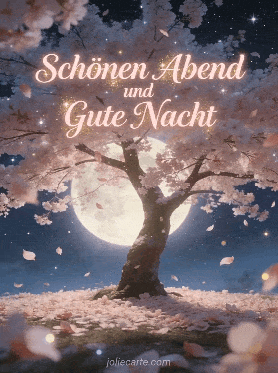 Schoenen Abend und Gute Nacht ein romantischer Gruss unter den Kirschblueten