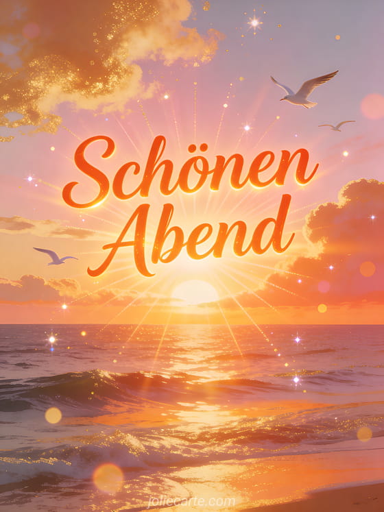 Beende den Tag wunderschoen mit diesem warmen und goldenen Abendgruss. Entdecke auch eine Abendkarte mit Bild, eine Abendkarte mit Spruch oder eine lustige Abendkarte.