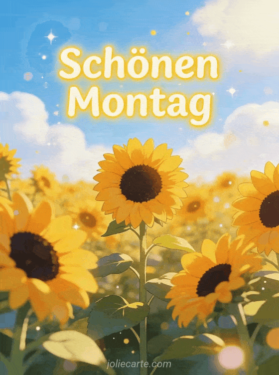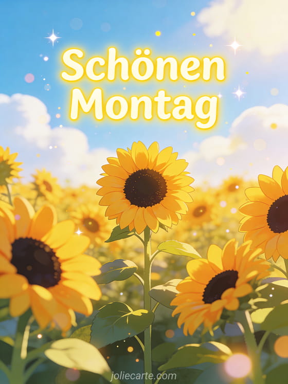Erhellen Sie jemandem den Montag mit dieser fröhlichen GruĂkarte Schönen Montag mit einem Sonnenblumenfeld unter blauem Himmel. Entdecken Sie auch eine Wochenstartkarte, eine Montagskarte oder eine sonnige Montagskarte.