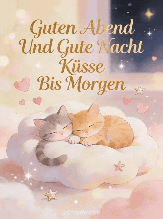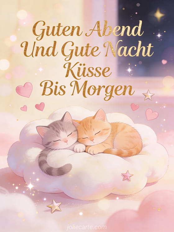 Guten Abend und gute Nacht Küsse bis morgen eine liebevolle Abendkarte mit kuschelnden Kätzchen