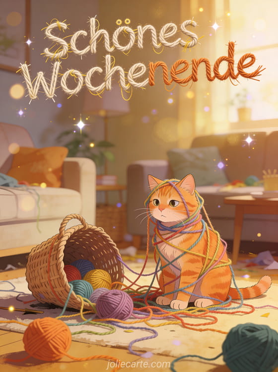 Wünschen Sie jemandem ein wunderschönes Wochenende mit einem lustigen und fröhlichen Gruß. Entdecken Sie auch eine Wochenende mit Blumen Karte oder eine gemütliche Wochenende Karte.