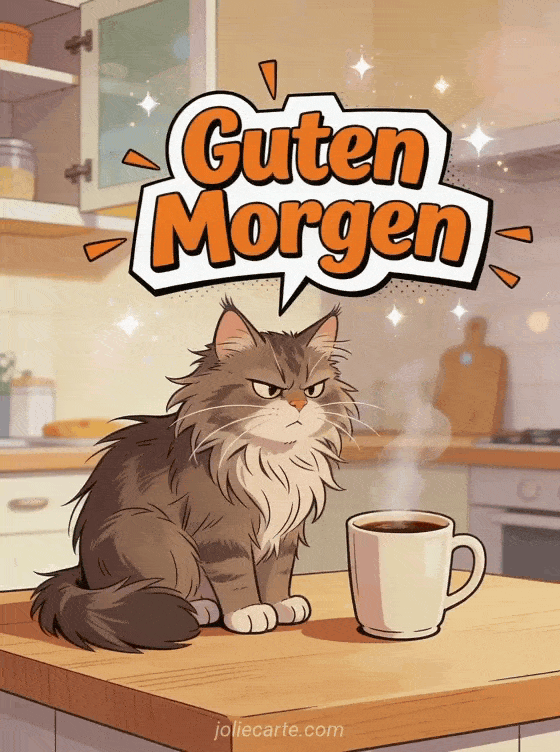 Senden Sie einen lustigen Guten-Morgen-Gruß, um jemandem den Tag mit Humor zu verschönern. Entdecken Sie auch ein kostenloses Guten-Morgen-Bild, eine Karte berührender Guten-Morgen-Gruß oder eine Karte Morgen-Gruß.