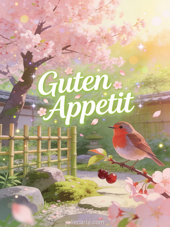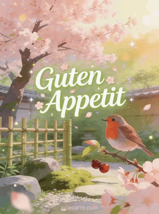Sende einen frischen Guten Appetit mit einer schönen Frühlingsatmosphäre. Entdecke auch einen lustigen guten Appetit, einen guten Appetit mit Humor oder einen lustigen guten Appetit Gruß.