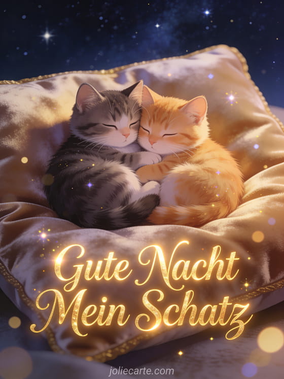 Senden Sie die süßeste Gute Nacht an Ihren Schatz mit dieser bezaubernden Grußkarte. Eine warme und kuschelige Art, Gute Nacht zu sagen. Entdecken Sie auch eine Gute Nacht mein Schatz Fernbeziehung Karte oder eine Gute Nacht mein Schatz Herz Karte.
