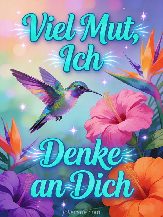 Sende ein aufmunterndes Viel Mut, ich denke an dich, um jemandem in schwierigen Zeiten Kraft zu geben. Entdecke auch eine Ich denke an dich romantische Karte, eine Ich denke an dich Mut-Karte oder eine Ich denke an dich Karte.