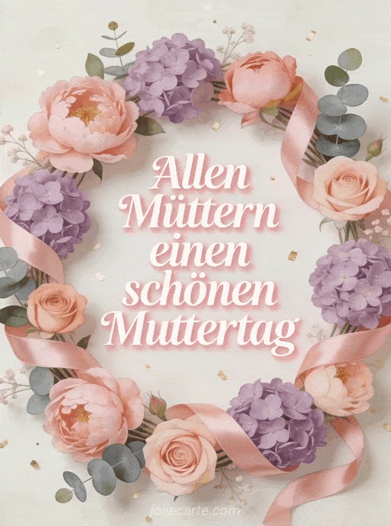 Feiern Sie alle Mütter mit einem fröhlichen Gruß zum Muttertag voller Liebe und Dankbarkeit. Entdecken Sie auch ein Muttertag Gif, ein Muttertagsgedicht oder eine animierte Muttertagskarte.