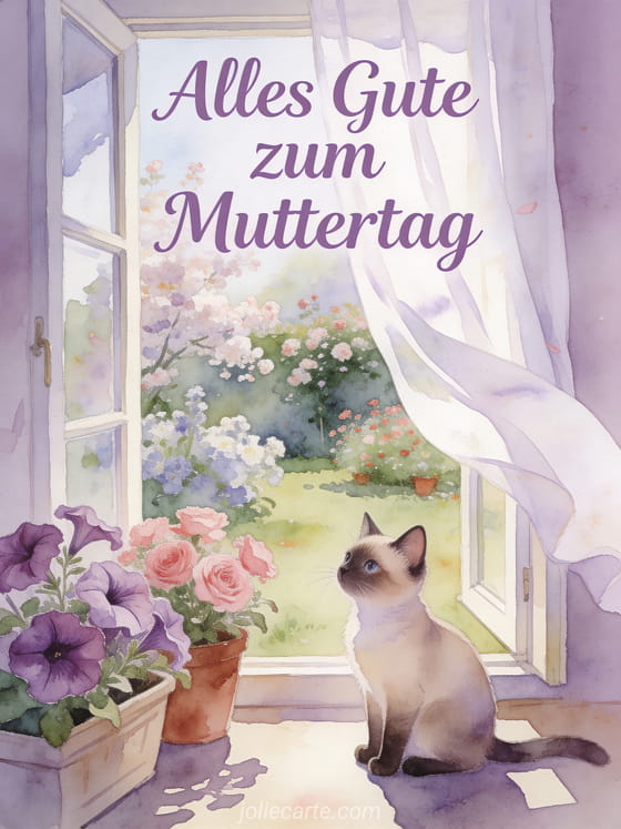 Feiern Sie den Muttertag mit einem ruhigen und frühlingshaften Gruß voller Zärtlichkeit und Frieden. Entdecken Sie auch eine Blumen-Muttertagskarte, süße Worte zum Muttertag oder eine Muttertagskarte PS.