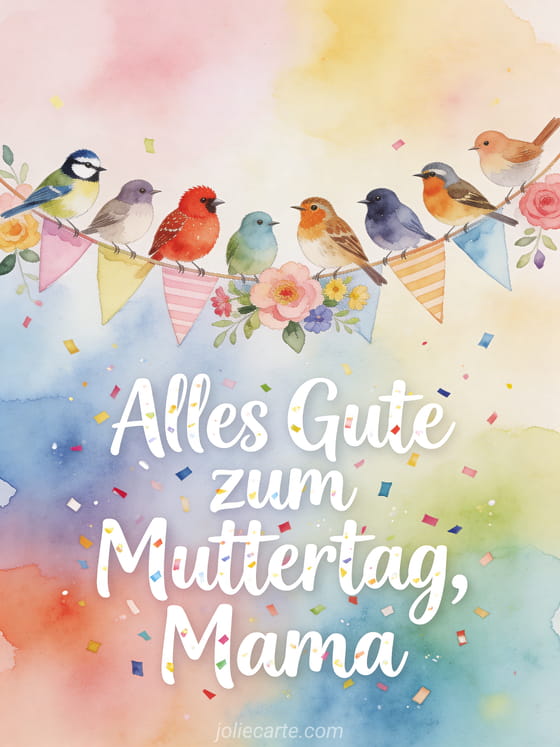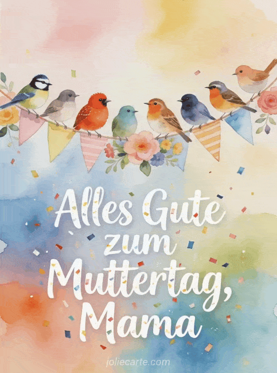 Feiern Sie den Muttertag mit einem fröhlichen und festlichen Gruß voller Freude für Mama. Entdecken Sie auch ein Muttertag Bild gratis, eine Muttertagskarten Vorlage oder eine Muttertagskarte gratis.