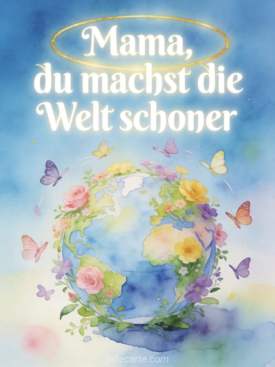 Sagen Sie Ihrer Mama, dass sie die Welt schöner macht, mit diesem poetischen und zĂ€rtlichen GruĂ. Entdecken Sie auch eine Muttertagskarte PS, eine fröhliche Muttertagskarte oder ein Muttertag Bild gratis.
