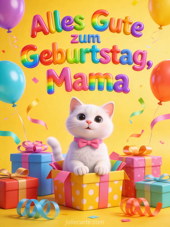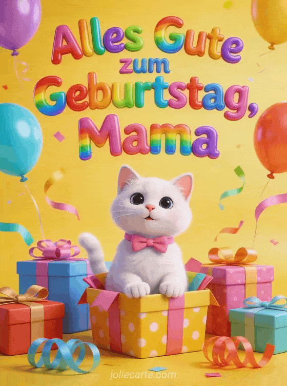 Senden Sie einen fröhlichen Geburtstagsgruß an Ihre Mama und füllen Sie ihren Tag mit Farben und Glück. Feiern Sie sie mit dieser verspielten Karte. Entdecken Sie auch einen Geburtstagstext für Mama, ein kostenloses Geburtstagsbild für Mama oder ein Geburtstags-GIF für Mama.