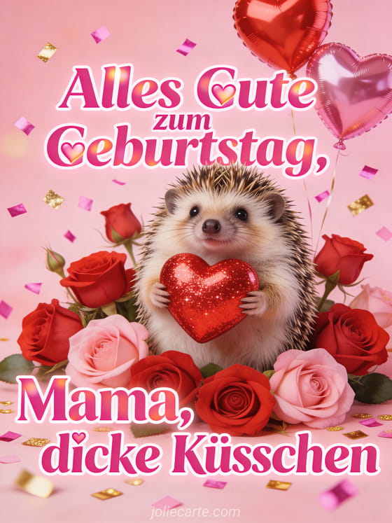 Senden Sie einen herzlichen Geburtstagsgruß an Ihre Mama mit vielen Küssen und Liebe. Verschonen Sie ihren besonderen Tag mit dieser süßen Karte. Entdecken Sie auch einen Geburtstagsgruß für Mama mit Blumen, eine Geburtstagskarte für Mama oder eine Geburtstags-eCard für Mama.