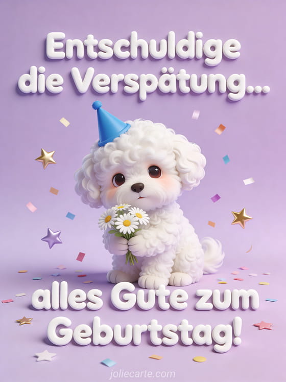 Es ist nie zu spĂ€t, alles Gute zum Geburtstag zu wĂŒnschen, mit dieser bezaubernden Karte. Entdecke auch eine nachtrĂ€gliche E-Card Geburtstag oder eine Geburtstag verspĂ€tet Karte.