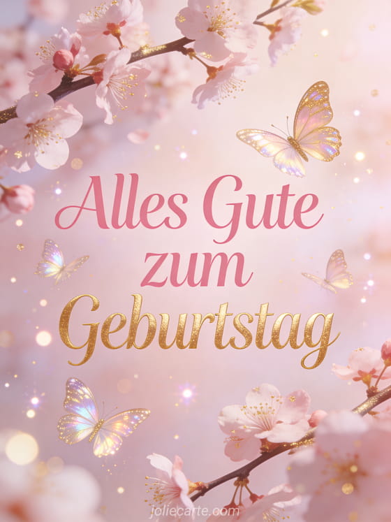 Alles Gute zum Geburtstag ein zarter Geburtstagsgruß mit Schmetterlingen und Kirschblüten