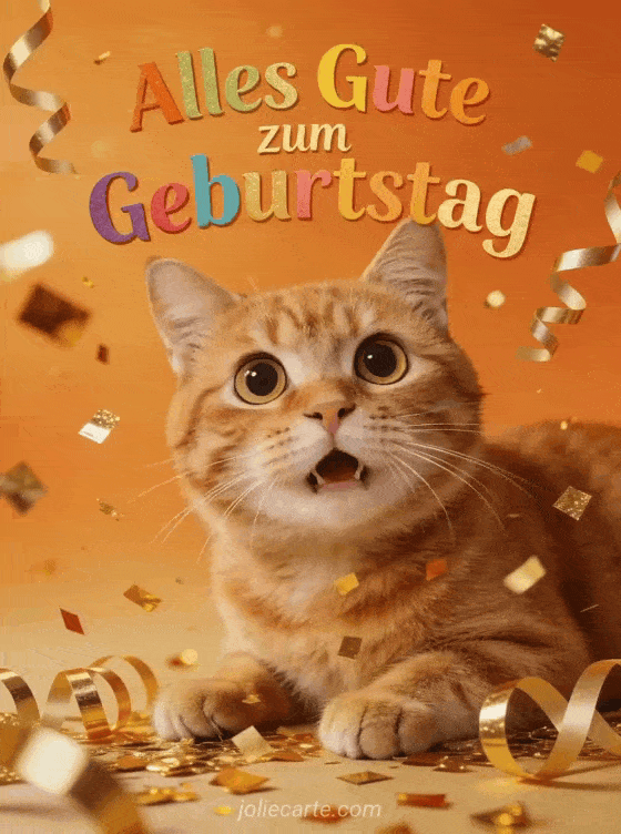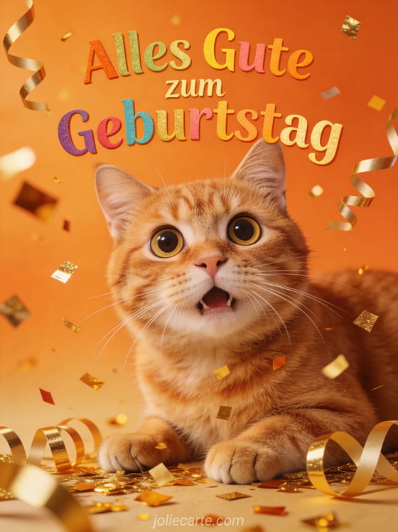 Versüßen Sie jemandem den Geburtstag mit dieser entzückenden Karte mit einer überraschten roten Katze und goldenem Konfetti. Entdecken Sie auch eine Karte mit Geburtstagsspruch oder eine Geburtstagskarte mit Blumen.