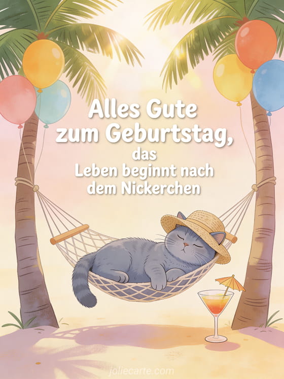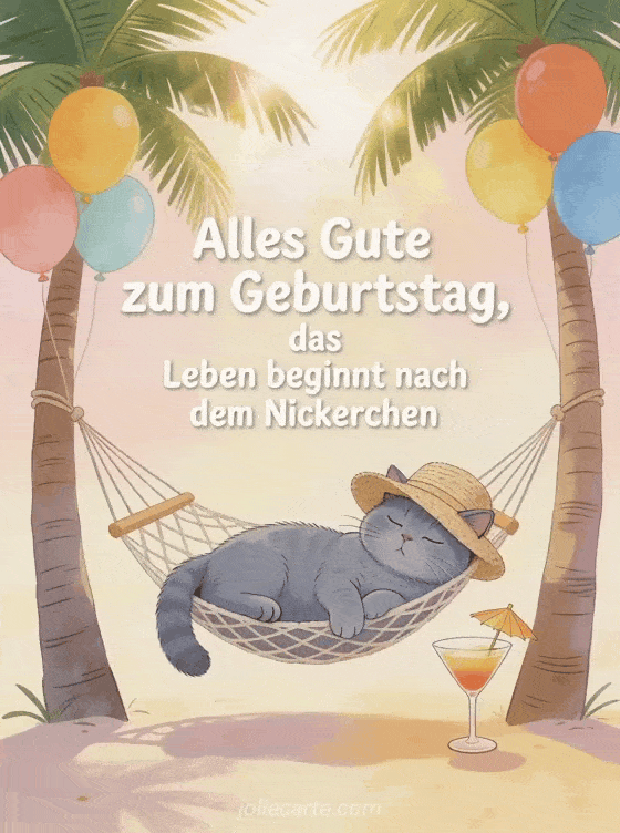 WĂŒnschen Sie alles Gute zum Geburtstag mit einem Hauch von Humor und Entspannung. Entdecken Sie auch einen Geburtstag Mann Text, eine Geburtstagskarte fĂŒr MĂ€nner oder ein Geburtstag Mann GIF kostenlos.