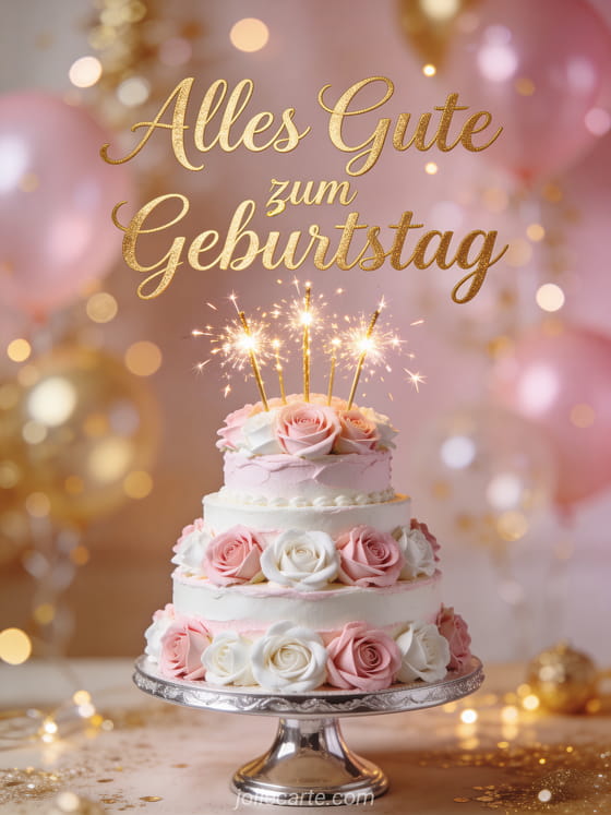 Alles Gute mit eleganter Rosentorte ein wunderschöner und eleganter Geburtstagsgruß