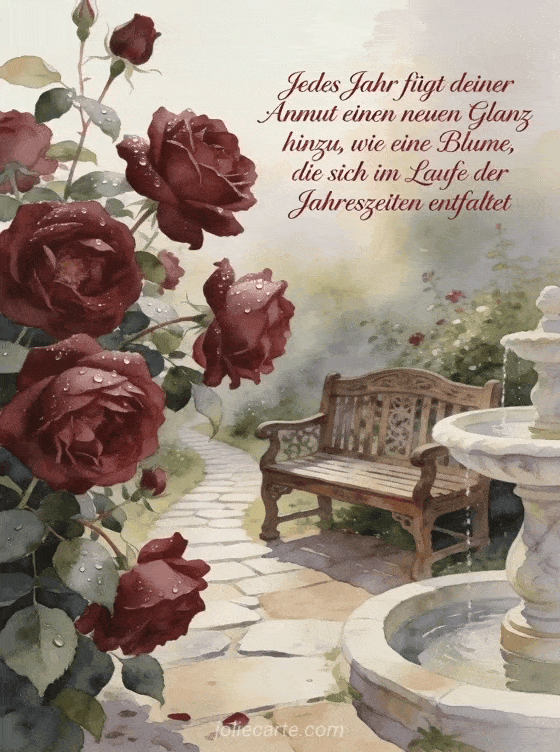 Senden Sie einen poetischen Geburtstagsgruß, der Anmut und Schönheit mit jedem Jahr feiert. Entdecken Sie auch Geburtstag Frau Blumen Bilder, einen Text Geburtstag Frau oder ein GIF Geburtstag Frau.