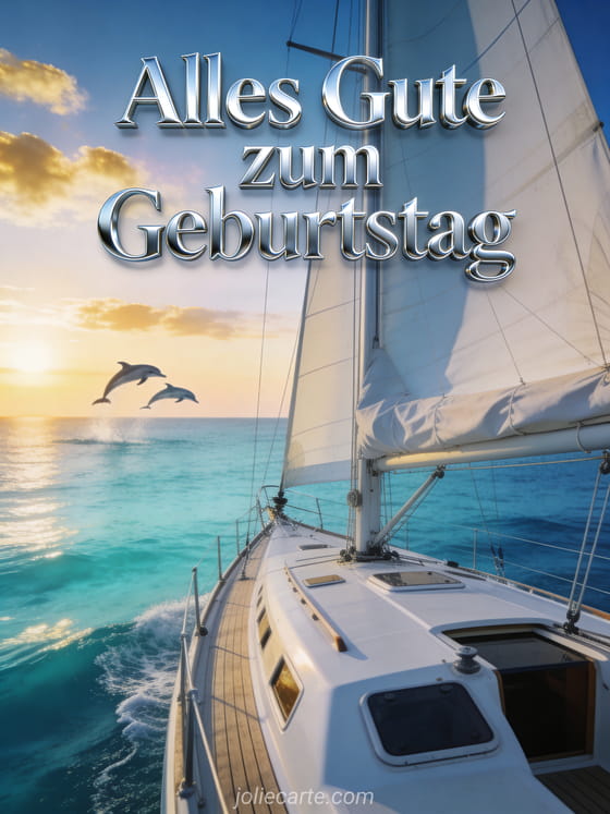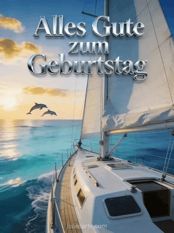 Senden Sie einen friedlichen und eleganten Geburtstagsgruß mit einem Segelboot auf türkisfarbenem Meer bei Sonnenuntergang. Entdecken Sie auch ein animiertes Geburtstags-GIF mit Pferd.