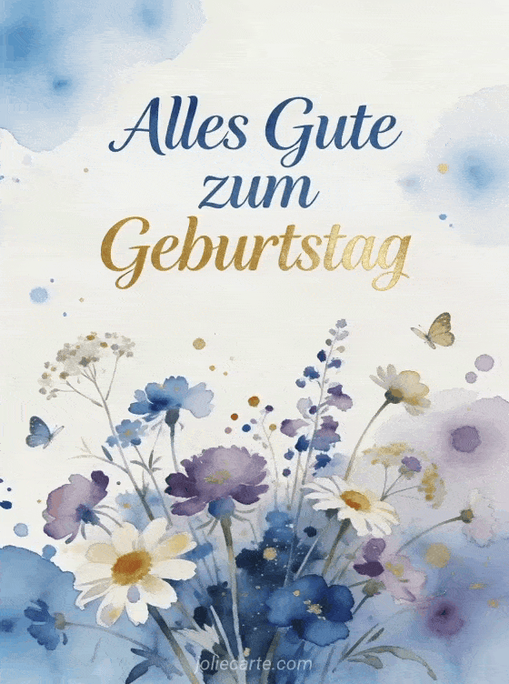 Senden Sie einen wunderschonen Geburtstagsgruss mit einem zarten Aquarell-Touch. Entdecken Sie auch eine Geburtstagskarte als Gif oder eine Geburtstagskarte mit Foto.