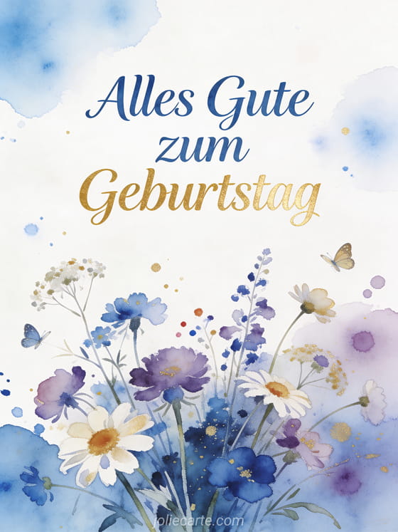 Alles Gute zum Geburtstag ein poetischer Geburtstagsgruss mit Aquarell-Wildblumen
