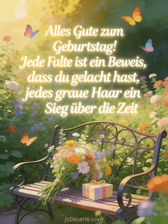 Alles Gute! Jede Falte ist ein Beweis, dass du gelacht hast ein herzliches Geburtstagszitat, das ein gut gelebtes Leben feiert