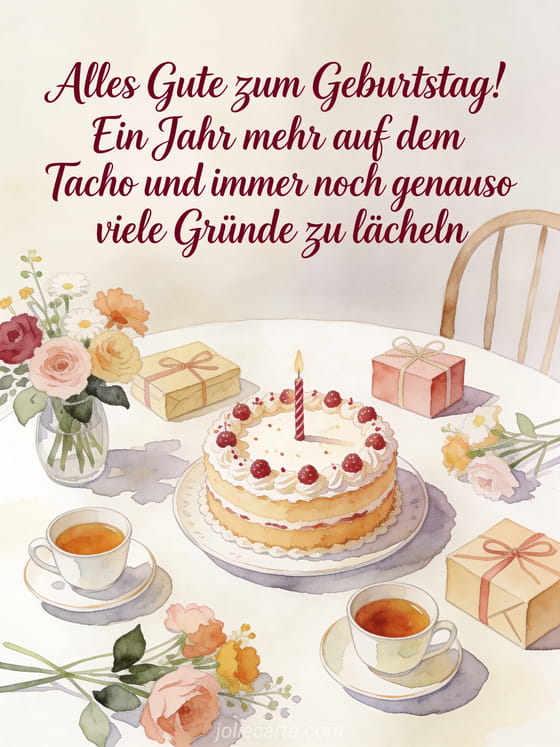 Alles Gute! Ein Jahr mehr und immer noch viele GrĂŒnde zu lĂ€cheln ein fröhliches Geburtstagszitat, das jeden Grund zum LĂ€cheln feiert
