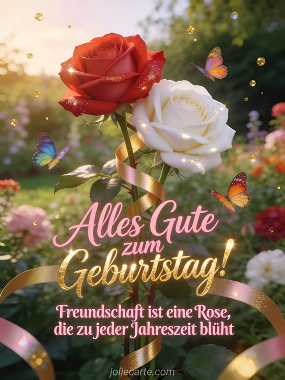 Alles Gute! Freundschaft ist eine Rose, die immer blüht eine wunderschöne Geburtstagsnachricht über Freundschaft