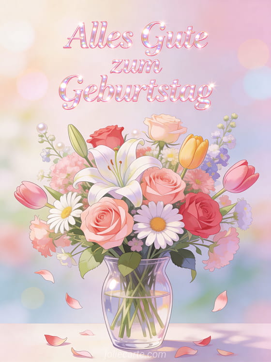 Alles Gute zum Geburtstag ein zarter Geburtstagsgruß mit einem wunderschönen Pastellblumenstrauß