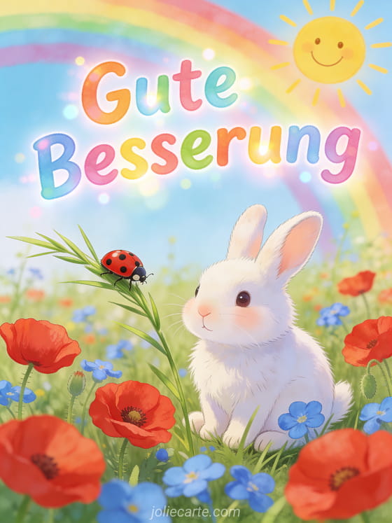 Senden Sie eine fröhliche Genesungskarte mit dem Text Gute Besserung an einen lieben Menschen. Entdecken Sie auch eine Karte Mut und gute Besserung, eine Karte gute Besserung und Kraft oder eine Gute Besserung ecard.