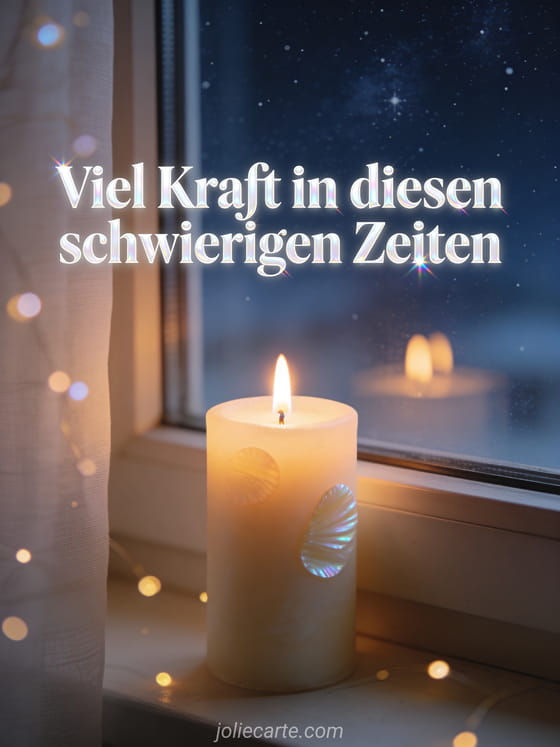 Verschicke diese wunderschone Mutmach-Karte mit einer brennenden Kerze auf einer Fensterbank und einem Sternenhimmel, um jemanden in schwierigen Zeiten zu trosten. Entdecke auch eine Mutmach-Karte oder eine inspirierende Mutmach-Karte oder eine Mutmach-Karte mit Herzen.