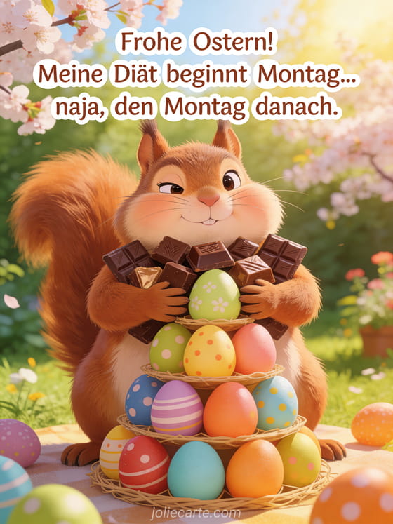Frohe Ostern! Meine Diät beginnt Montag... naja, den Montag danach. eine urkomische Osterkarte über die Schokoladenversuchung