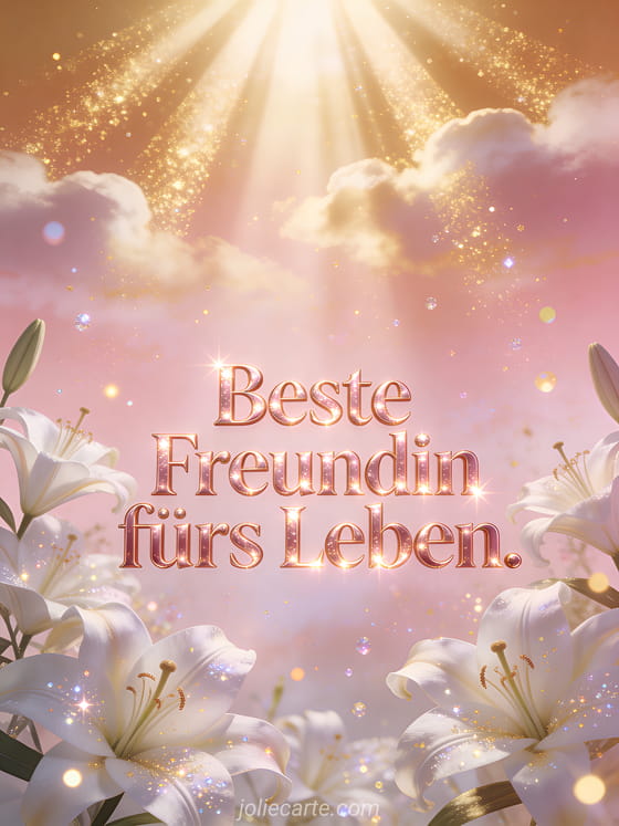 Senden Sie eine funkelnde Nachricht, um eine Freundschaft zu feiern, die ein Leben lang hält. Beste Freundin fürs Leben, ein Band, das nichts brechen kann. Entdecken Sie auch einen berührenden Text für die beste Freundin, ein berührendes Zitat für die beste Freundin oder eine Botschaft für die beste Freundin.