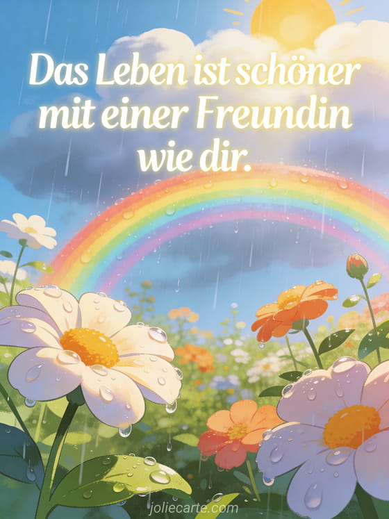 Senden Sie eine strahlende Nachricht an die Freundin, die Ihr Leben jeden Tag schöner macht. Entdecken Sie auch eine Freundschaftszitat für die beste Freundin, ein Bild für die beste Freundin oder einen berührenden Text für die beste Freundin.