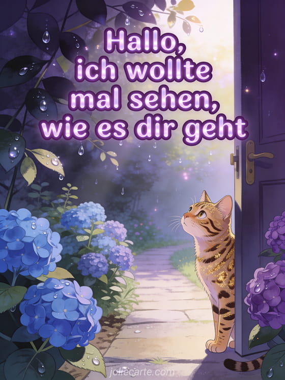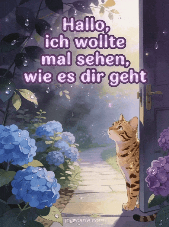 Senden Sie einen fürsorglichen Gruß, um zu zeigen, dass Sie an jemanden denken. Entdecken Sie auch eine Karte mit wie geht es dir meine Liebe, mit mir geht es gut danke oder mit hallo wie geht es dir.