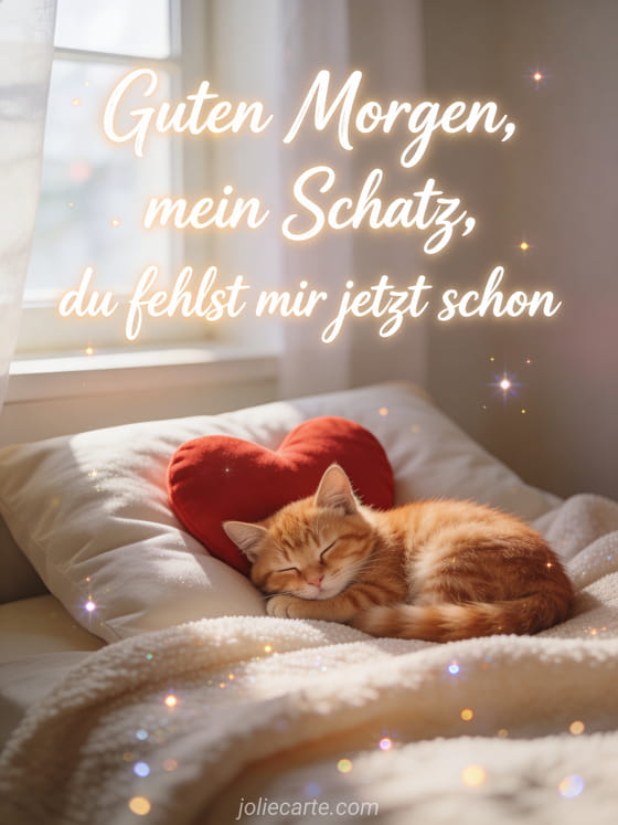 Senden Sie einen zĂ€rtlichen Guten Morgen an Ihren Liebling und lassen Sie ihn wissen, dass Sie ihn jetzt schon vermissen. FĂŒr weitere liebevolle Morgenbotschaften entdecken Sie ein glamouröses Guten-Morgen-Bild, ein animiertes Guten Morgen mit Liebe oder ein romantisches Guten-Morgen-Bild.