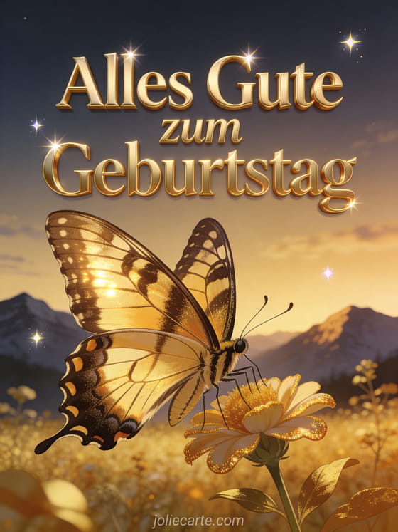 Alles Gute zum Geburtstag ein majestÀtischer Schmetterling in einem goldenen Garten