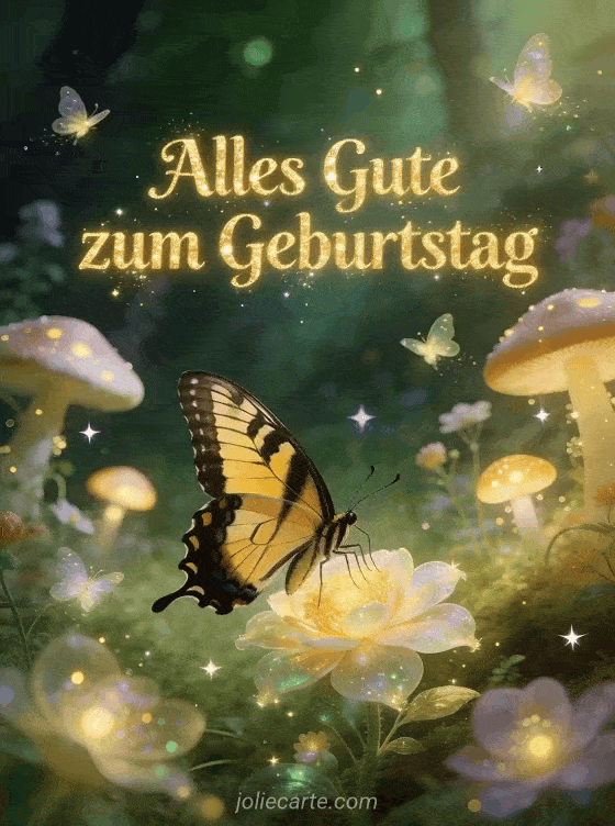 Alles Gute zum Geburtstag ein magischer Schmetterling in einer verzauberten Lichtung