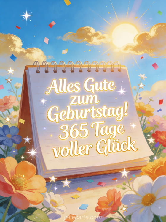 Feiere mit einer inspirierenden Geburtstagskarte mit floralem Kalender, goldenen Wolken, funkelnden Sternen und fröhlichem Konfetti. Entdecke auch alles Gute zum Geburtstag Zeichnung Farbe, alles gute zum geburtstag katze gif und Geburtstag Tagesmutter.